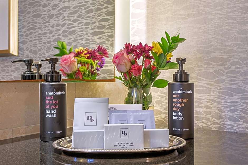 The spacious suite has a private bathroom, air conditioning, a tea and coffee maker, as well as a seating area with a flat-screen TV. The suite offers a safe deposit box.